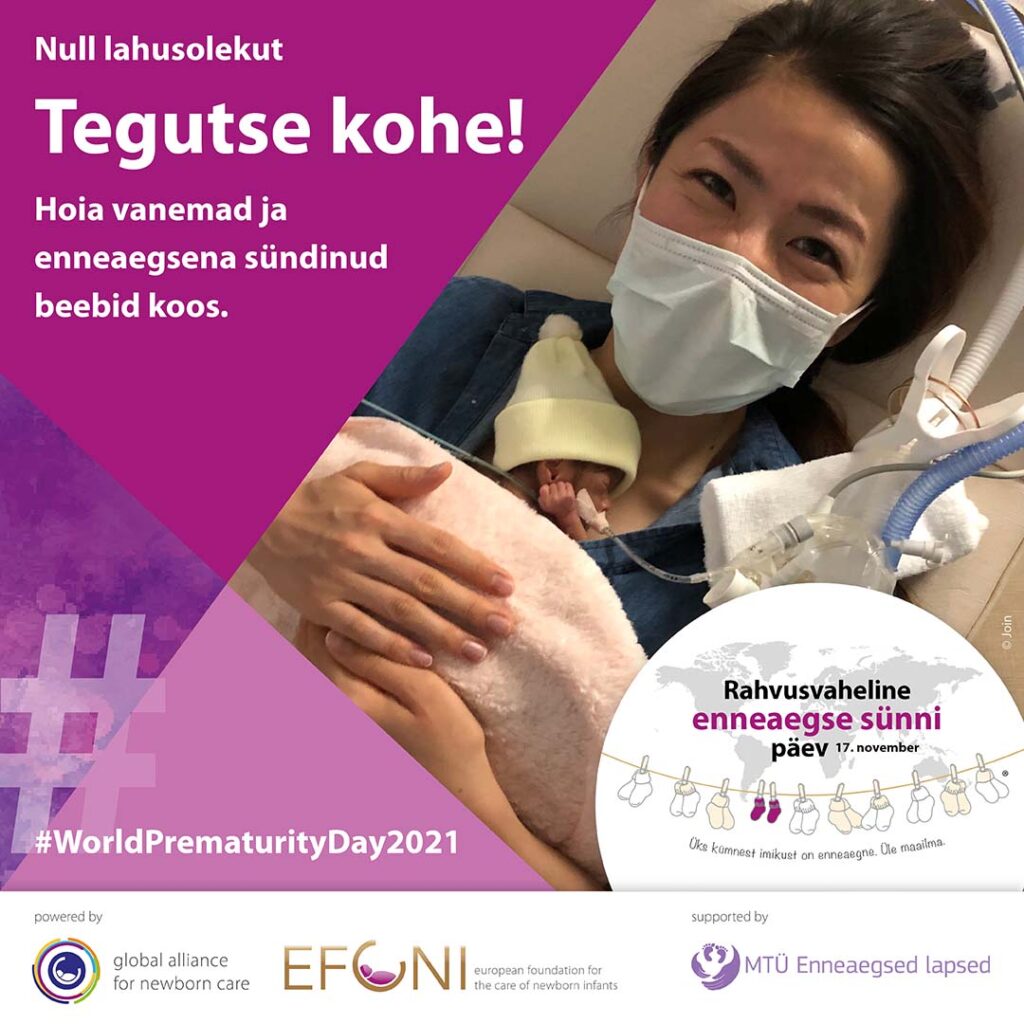 Igal aastal on enneaegse sünni päeval ülemaailmne kindel juhtmõte ja tulenevalt maailmas valitsevast olukorrast ning tingituna värskelt avaldatud ülemaailmsest enneaegsete laste vanemate kogemusi praeguse kriisi ajal kaardistanud uuringu muret tekitavatest tulemustest, on selle aasta moto väga selge ja jõuline: “Null lahusolekut! Tegutse kohe! Hoia vanemad ja enneaegsena sündinud beebid koos.”